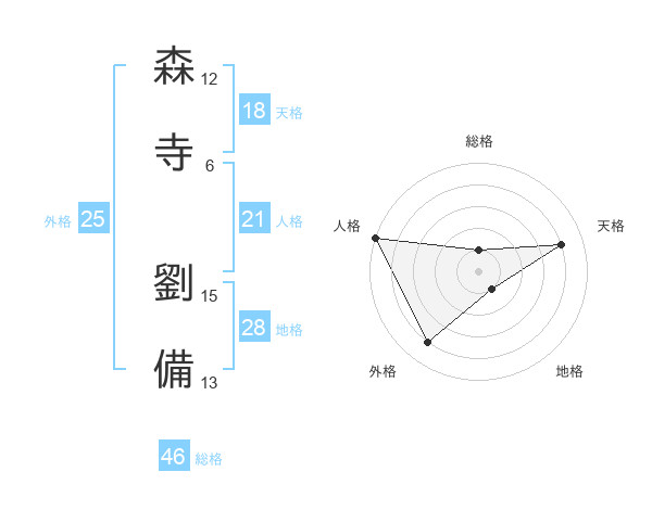 森寺 劉備さんの天格は18画の4点!