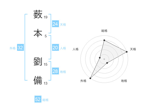 薮本 劉備さんを姓名の画数から五運を鑑定