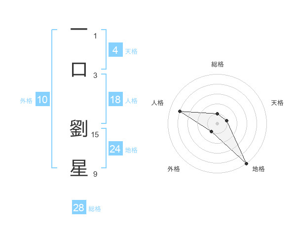 一口 劉星さんの地格は24画の5点!