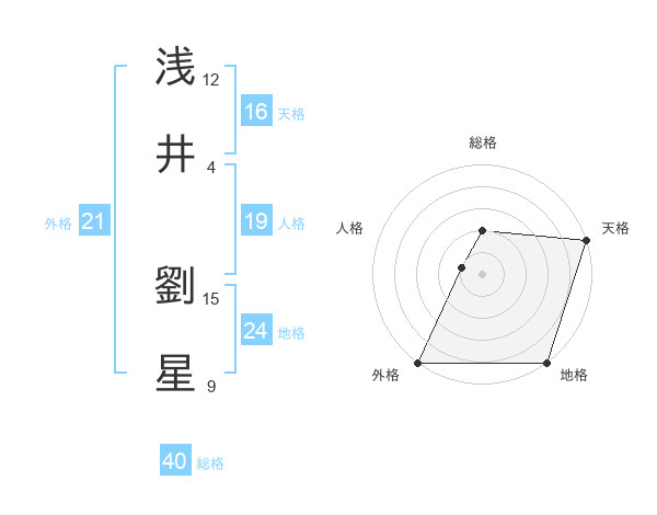 浅井 劉星さんを姓名の画数から五運を鑑定