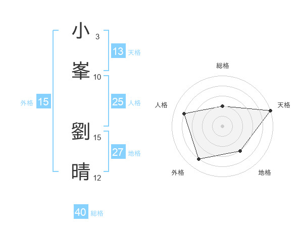 小峯 劉晴さんを姓名の画数から五運を鑑定