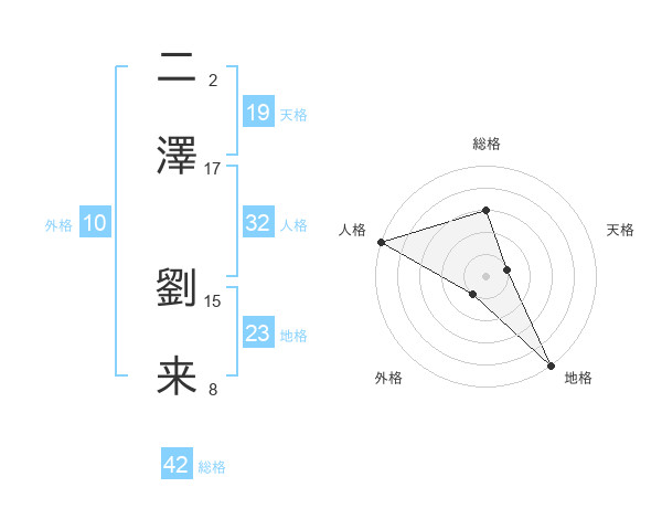 二澤 劉来さんの外格は10画の1点!