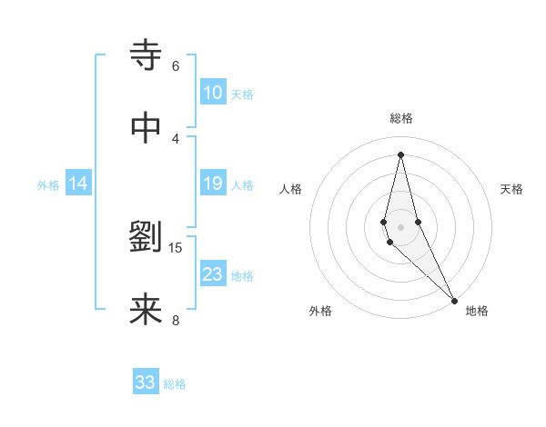 寺中 劉来さんを姓名の画数から五運を鑑定