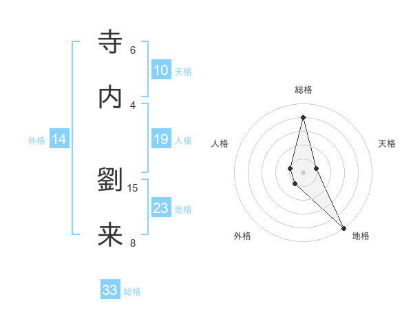 寺内 劉来さんを姓名の画数から五運を鑑定