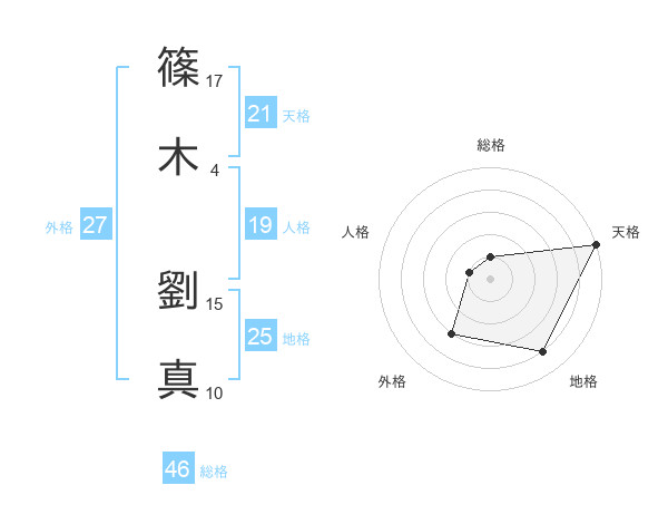 篠木 劉真さんを姓名の画数から五運を鑑定