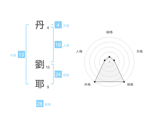 丹 劉耶さんを姓名の画数から五運を鑑定