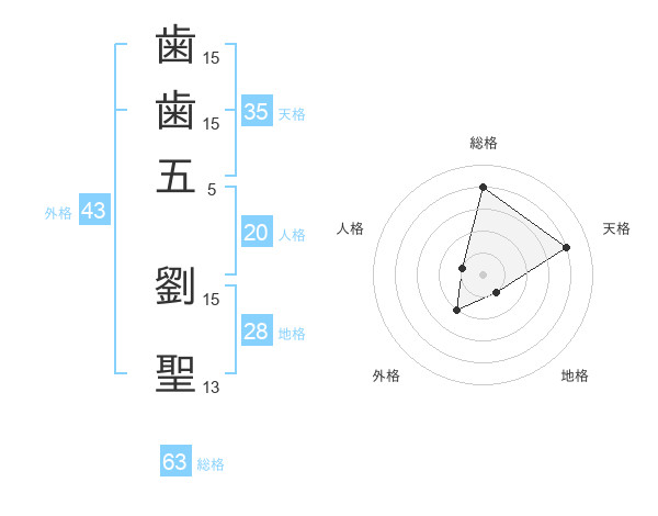 歯歯五 劉聖さんを姓名の画数から五運を鑑定