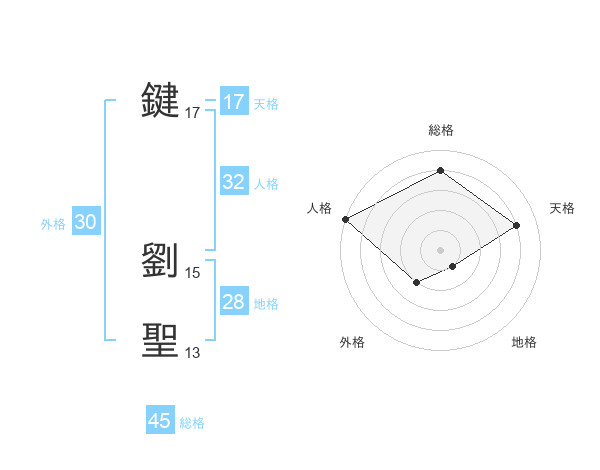 鍵 劉聖さんの天格は17画の4点!