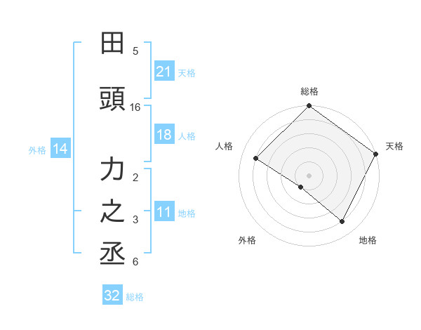 田頭 力之丞さんの総格は32画の5点!