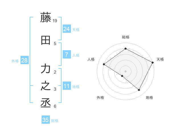 藤田 力之丞さんの天格は24画の5点!