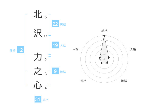 北沢 力之心さんを姓名の画数から五運を鑑定