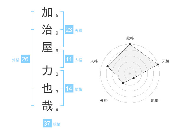 加治屋 力也哉さんを姓名の画数から五運を鑑定