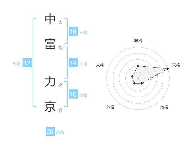 中富 力京さんの総格は26画の2点!