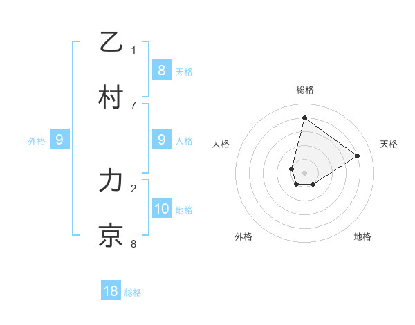 乙村 力京さんの総格は18画の4点!