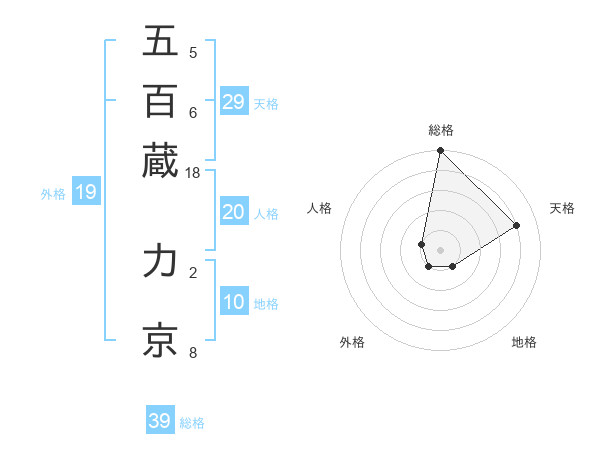 五百蔵 力京さんを姓名の画数から五運を鑑定