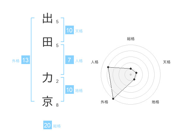 出田 力京さんの外格は13画の5点!