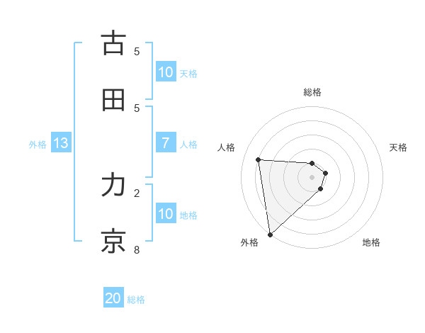古田 力京さんの外格は13画の5点!