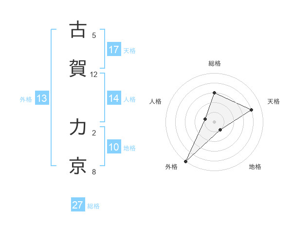 古賀 力京さんの天格は17画の4点!