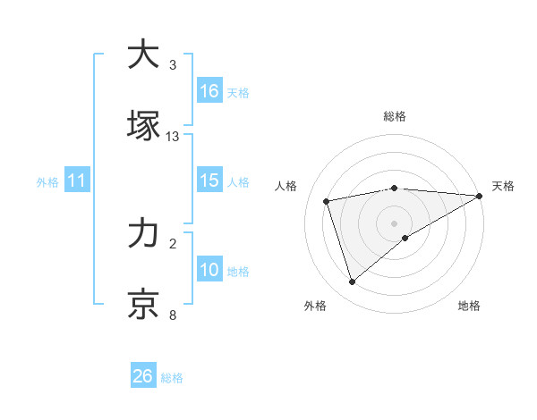 大塚 力京さんの天格は16画の5点!
