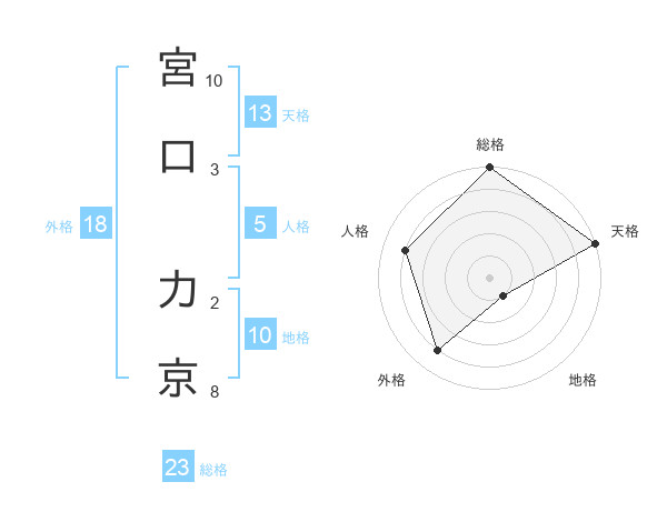 宮口 力京さんの天格は13画の5点!