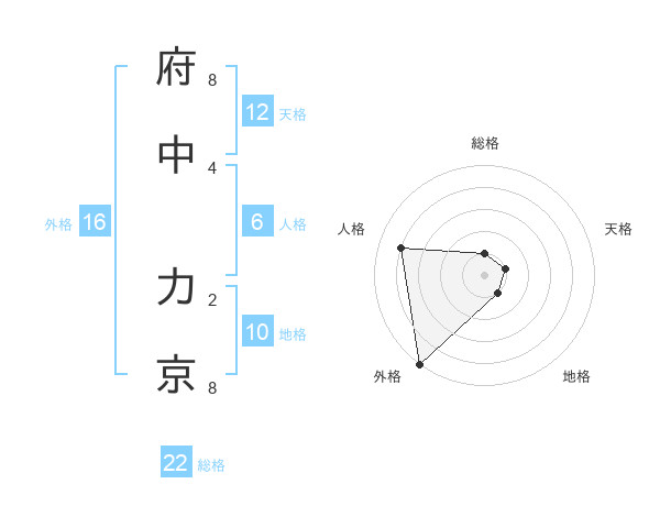 府中 力京さんの総格は22画の1点!