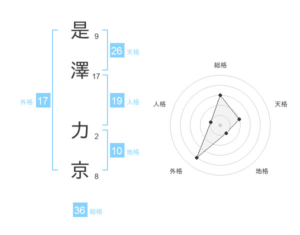 是澤 力京さんの外格は17画の4点!