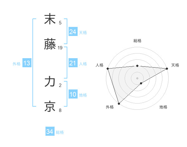 末藤 力京さんの天格は24画の5点!