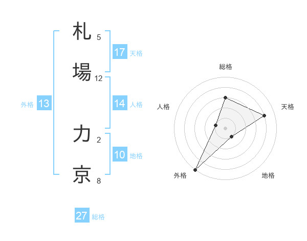家系が持つ宿命的な運勢を表します。祖先から受け継いだ苗字ですので自分の力が及びません。家柄を象徴します。
