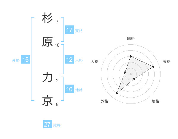 杉原 力京さんの天格は17画の4点!