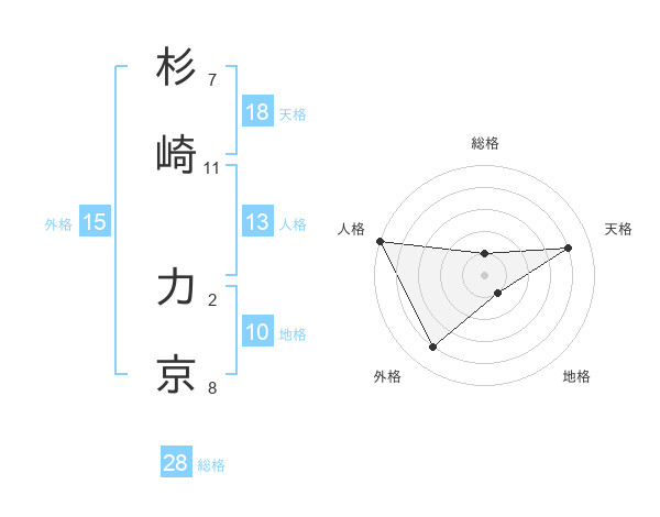 杉崎 力京さんの総格は28画の1点!