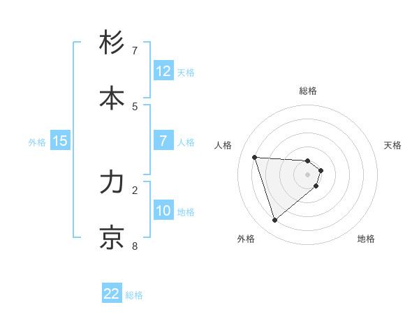 杉本 力京さんの総格は22画の1点!