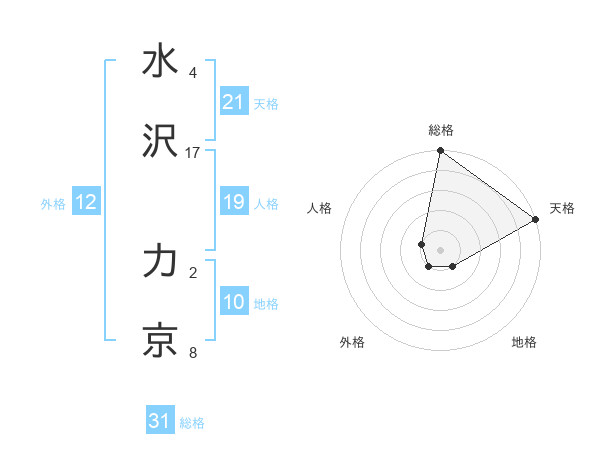 水沢 力京さんの総格は31画の5点!