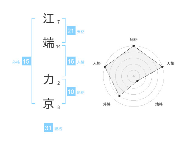 江端 力京さんの天格は21画の5点!