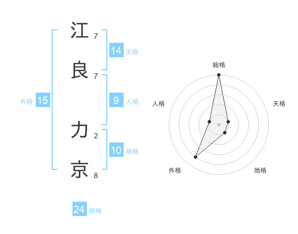 江良 力京さんの総格は24画の5点!