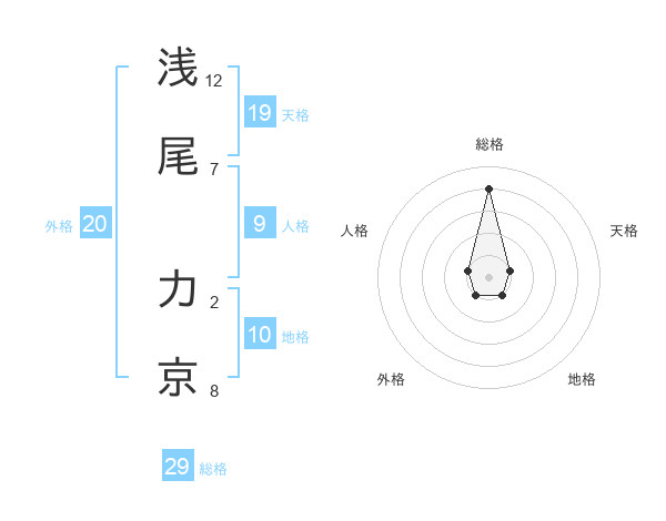 浅尾 力京さんの総格は29画の4点!