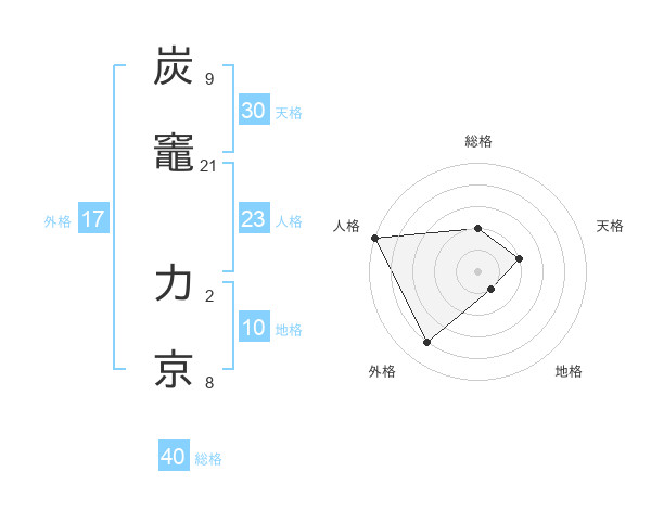 炭竈 力京さんの総格は40画の2点!