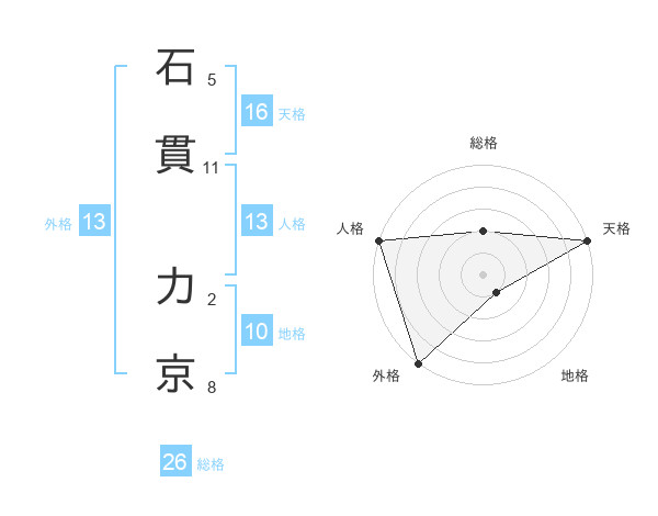 石貫 力京さんの外格は13画の5点!