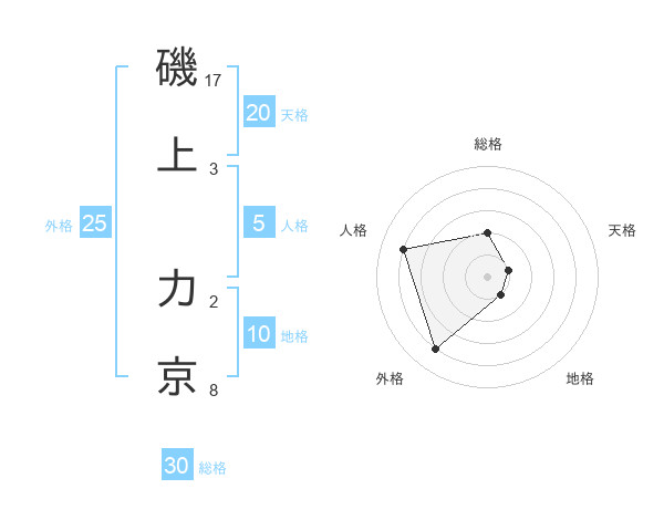 磯上 力京さんの総格は30画の2点!