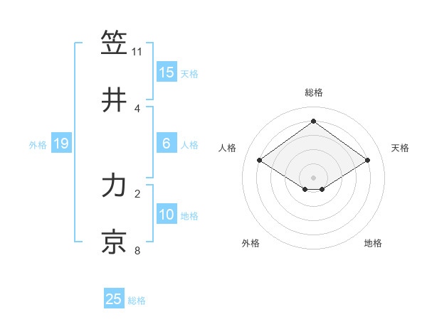 笠井 力京さんの総格は25画の4点!