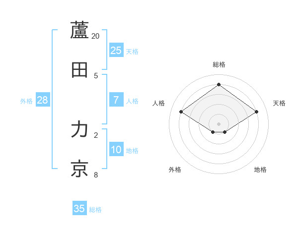蘆田 力京さんを姓名の画数から五運を鑑定