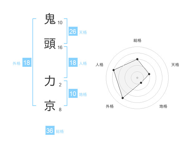 鬼頭 力京さんの総格は36画の3点!