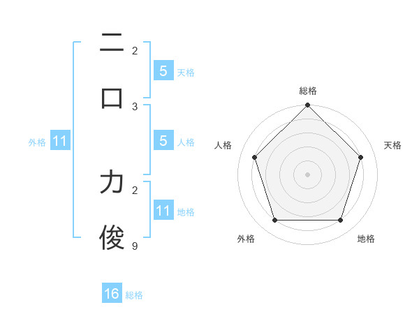 二口 力俊さんの総格は16画の5点!