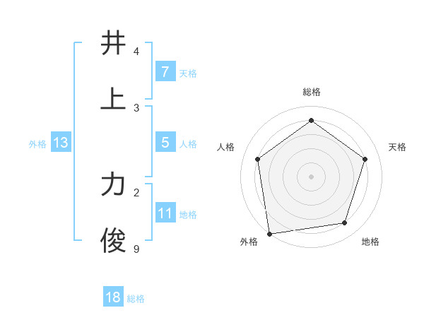 井上 力俊さんを姓名の画数から五運を鑑定