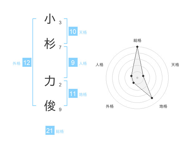 小杉 力俊さんを姓名の画数から五運を鑑定