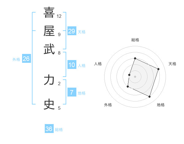 喜屋武 力史さんを姓名の画数から五運を鑑定