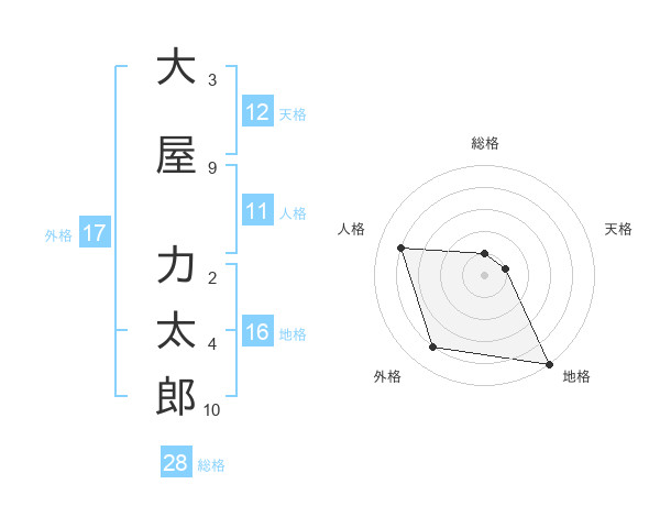 大屋 力太郎さんを姓名の画数から五運を鑑定