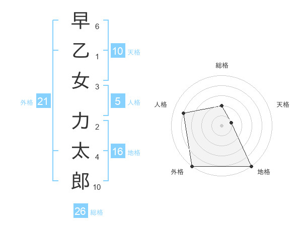 早乙女 力太郎さんを姓名の画数から五運を鑑定