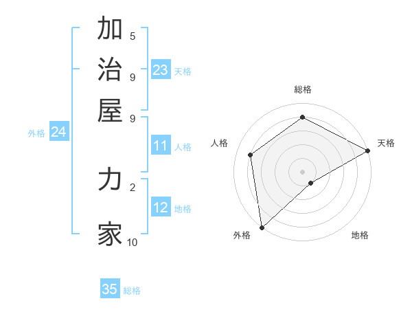 加治屋 力家さんの総格は35画の4点!