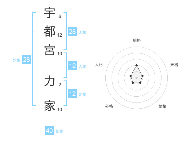宇都宮 力家さんの総格は40画の2点!