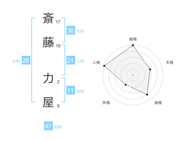 斎藤 力屋さんを姓名の画数から五運を鑑定